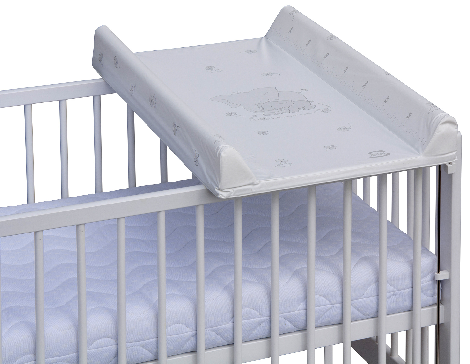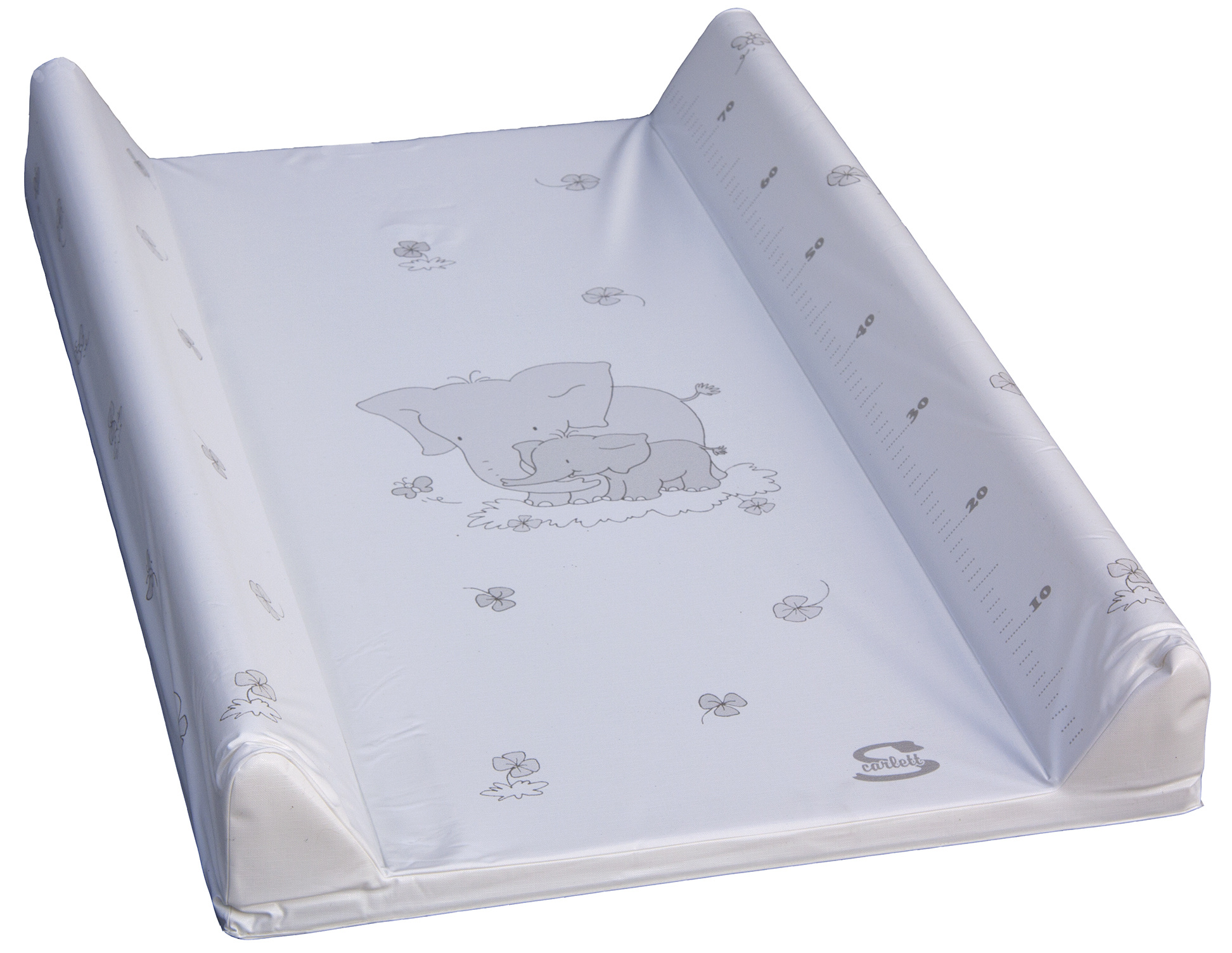Přebalovací podložka s pevnou vložkou z MDF a profilovanými okraji s kvalitním PVC potahem bez ftalátů, vyplněná molitanem.