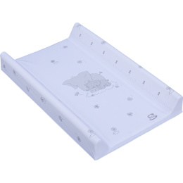 Přebalovací podložka s pevnou vložkou z MDF a profilovanými okraji s kvalitním PVC potahem bez ftalátů, vyplněná molitanem.