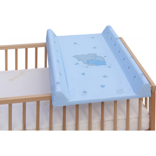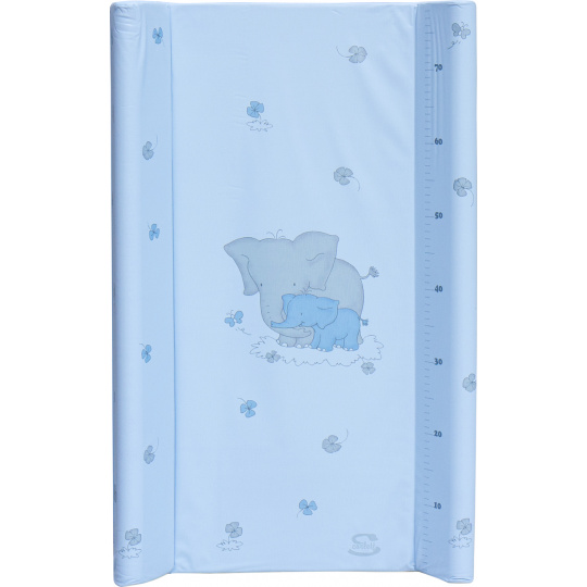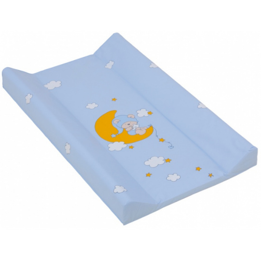 Přebalovací podložka s pevnou vložkou z MDF a profilovanými okraji s kvalitním PVC potahem bez ftalátů, vyplněná molitanem.