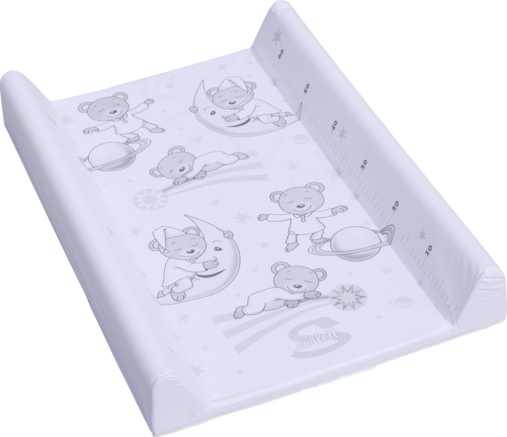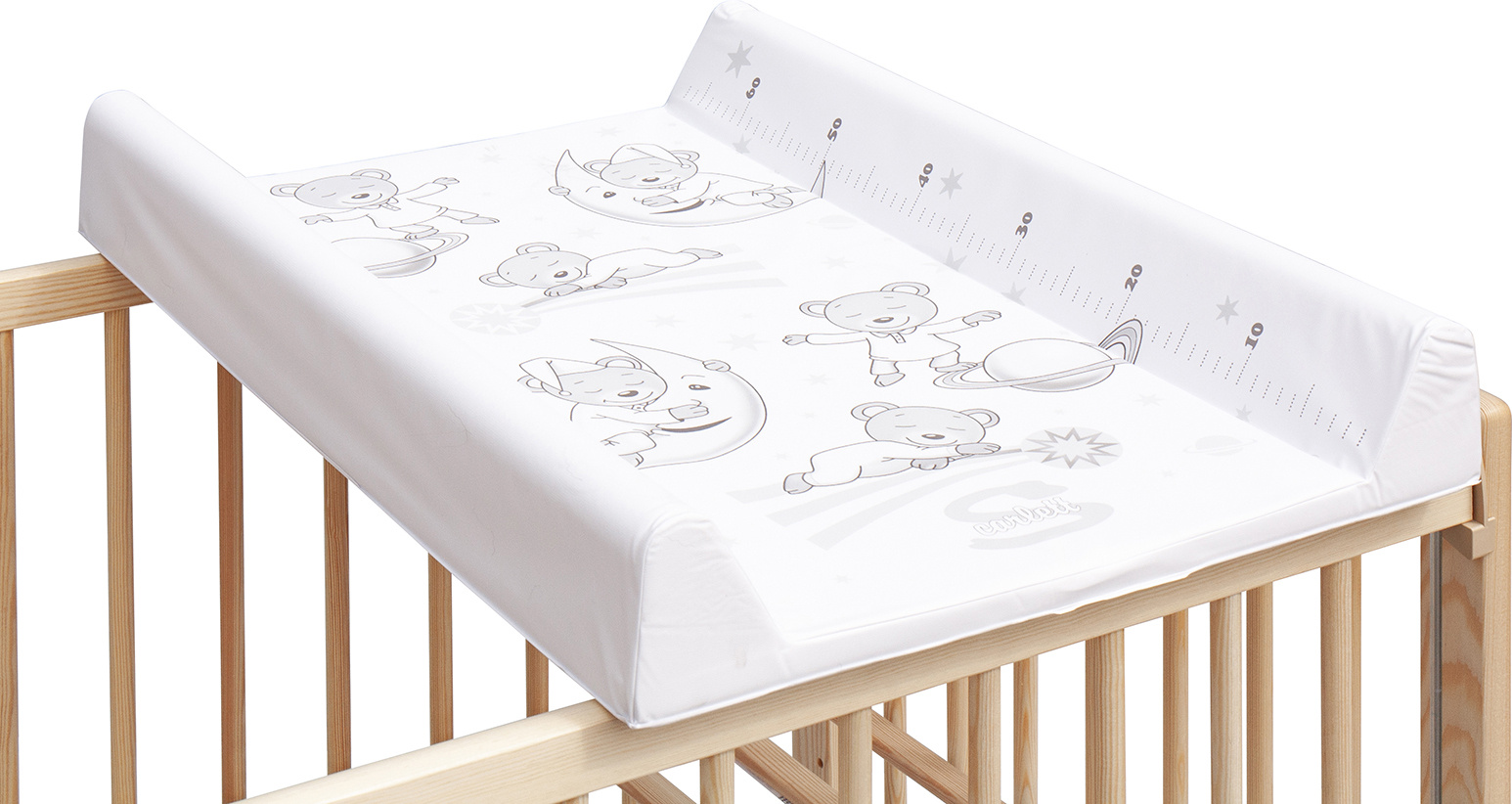 Přebalovací podložka s pevnou vložkou z MDF a profilovanými okraji s kvalitním PVC potahem bez ftalátů, vyplněná molitanem.