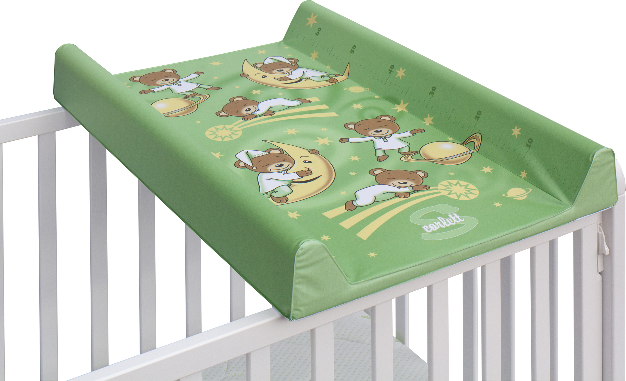 Přebalovací podložka s pevnou vložkou z MDF a profilovanými okraji s kvalitním PVC potahem bez ftalátů, vyplněná molitanem.