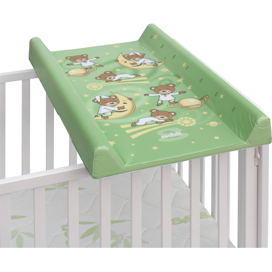 Přebalovací podložka s pevnou vložkou z MDF a profilovanými okraji s kvalitním PVC potahem bez ftalátů, vyplněná molitanem.