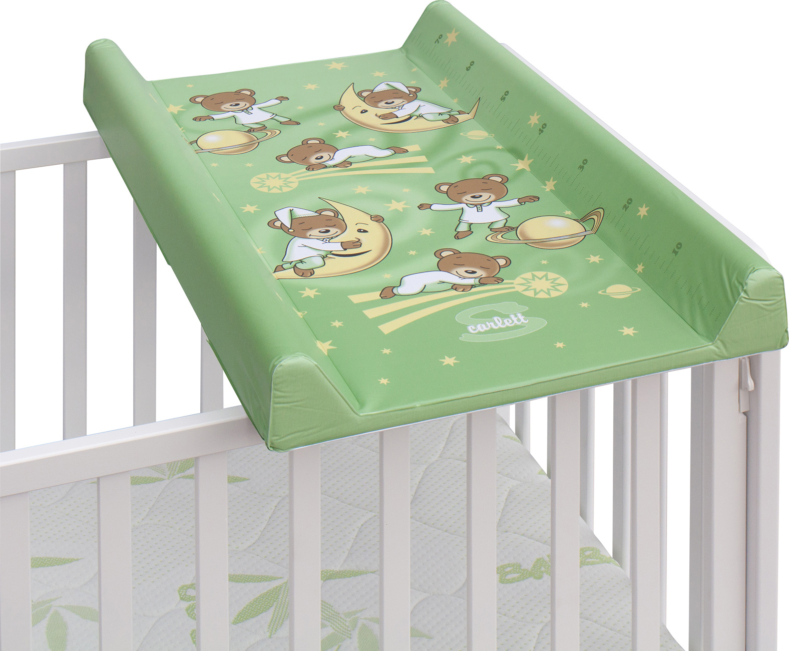 Přebalovací podložka s pevnou vložkou z MDF a profilovanými okraji s kvalitním PVC potahem bez ftalátů, vyplněná molitanem.