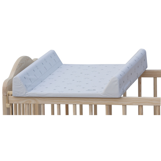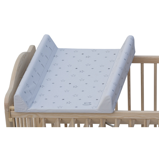 Přebalovací podložka s pevnou vložkou z MDF a profilovanými okraji s kvalitním PVC potahem bez ftalátů, vyplněná molitanem.