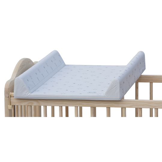 Přebalovací podložka s pevnou vložkou z MDF a profilovanými okraji s kvalitním PVC potahem bez ftalátů, vyplněná molitanem.