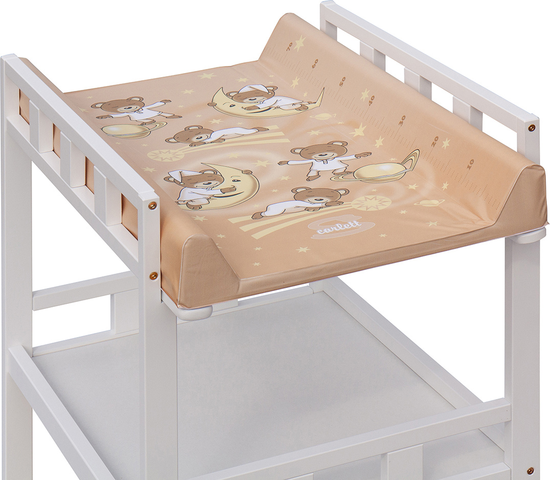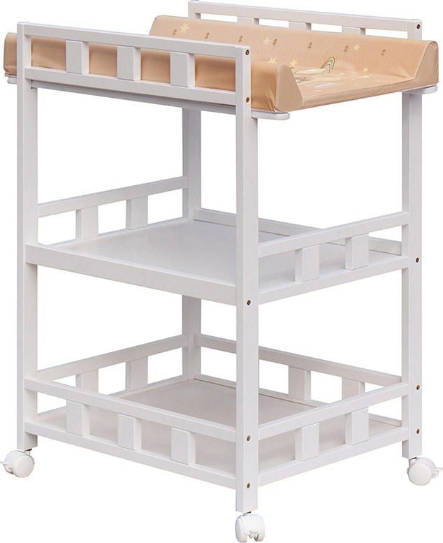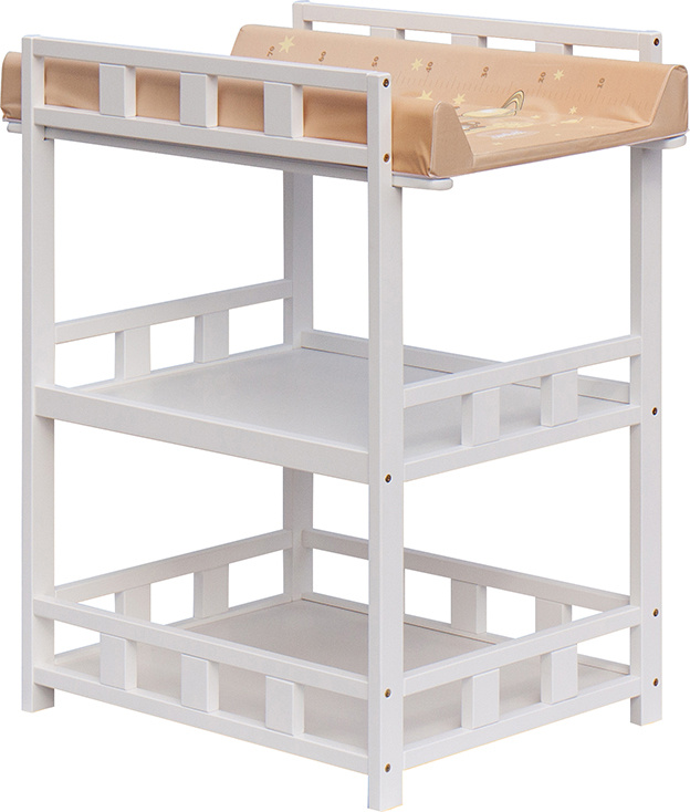 Praktický přebalovací pult se dvěmi policemi z HDF desky. Vrchní přebalovací pult z polyuretanu potažený omyvatelným PVC, vyztužený MDF deskou.