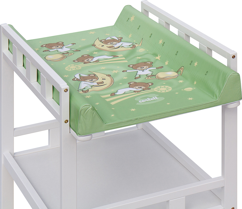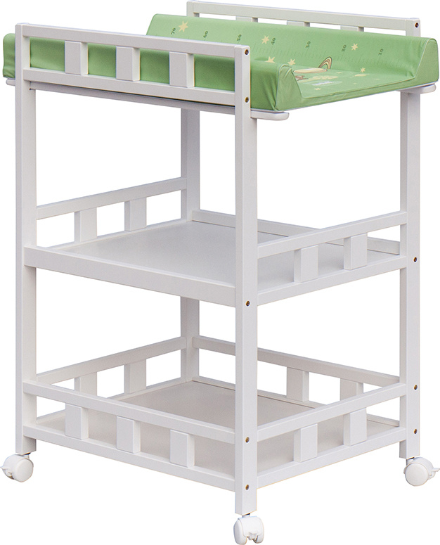 Praktický přebalovací pult se dvěmi policemi z HDF desky. Vrchní přebalovací pult z polyuretanu potažený omyvatelným PVC, vyztužený MDF deskou.