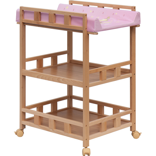 Praktický přebalovací pult se dvěmi policemi z HDF desky. Vrchní přebalovací pult z polyuretanu potažený omyvatelným PVC, vyztužený MDF deskou.