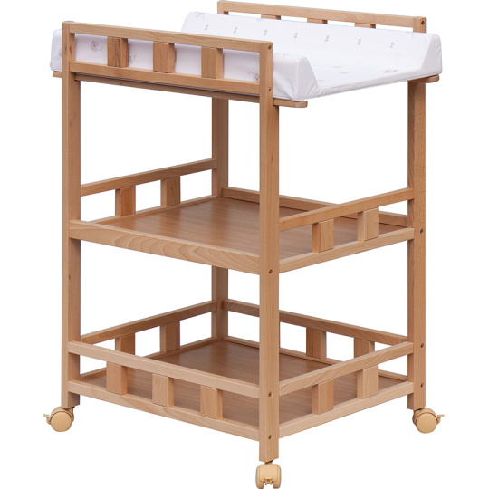 Praktický přebalovací pult se dvěmi policemi z HDF desky. Vrchní přebalovací pult z polyuretanu potažený omyvatelným PVC, vyztužený MDF deskou.