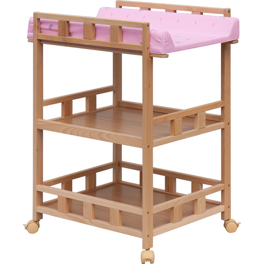 Praktický přebalovací pult se dvěmi policemi z HDF desky. Vrchní přebalovací pult z polyuretanu potažený omyvatelným PVC, vyztužený MDF deskou.