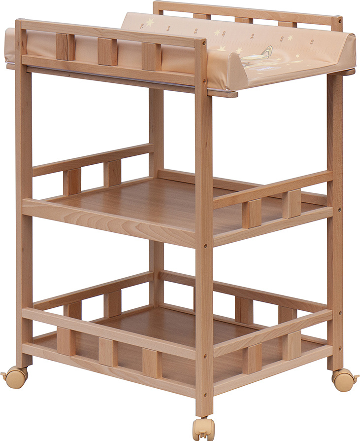 Praktický přebalovací pult se dvěmi policemi z HDF desky. Vrchní přebalovací pult z polyuretanu potažený omyvatelným PVC, vyztužený MDF deskou.