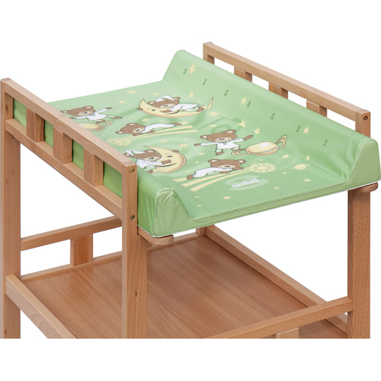 Praktický přebalovací pult se dvěmi policemi z HDF desky. Vrchní přebalovací pult z polyuretanu potažený omyvatelným PVC, vyztužený MDF deskou.