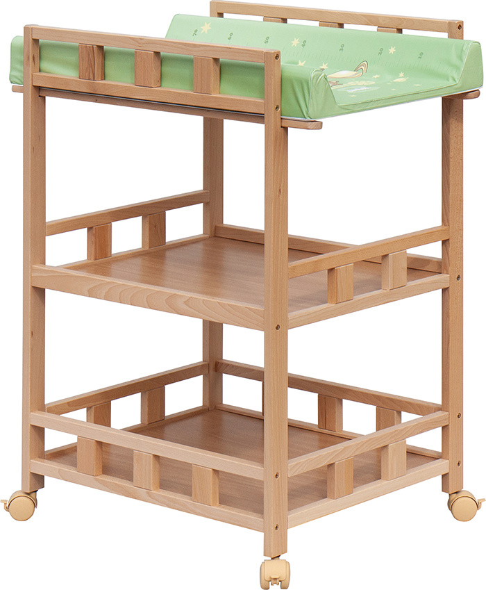 Praktický přebalovací pult se dvěmi policemi z HDF desky. Vrchní přebalovací pult z polyuretanu potažený omyvatelným PVC, vyztužený MDF deskou.
