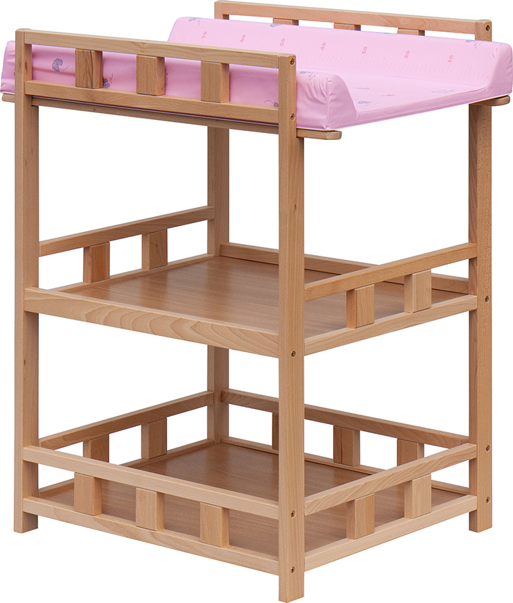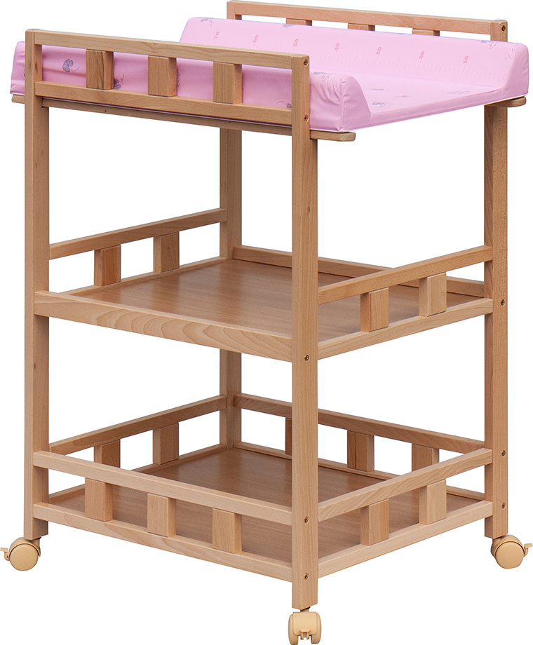 Praktický přebalovací pult se dvěmi policemi z HDF desky. Vrchní přebalovací pult z polyuretanu potažený omyvatelným PVC, vyztužený MDF deskou.