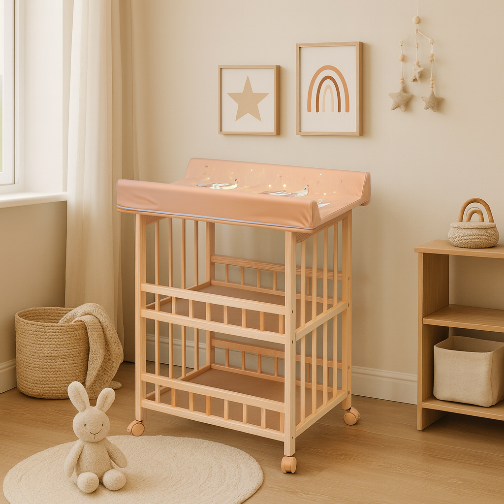 Přebalovací pult Jáš z borovicového přírodního dřeva bez povrchové úpravy.