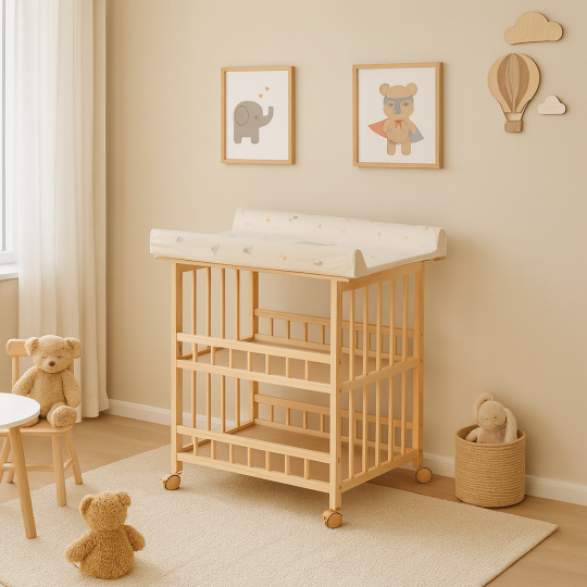 Přebalovací pult Jáš z borovicového přírodního dřeva bez povrchové úpravy.