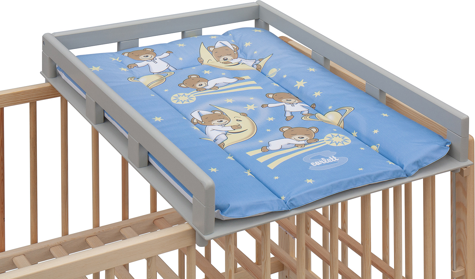 Scarlett Přebalovací pult OGY Scarlett na postýlku - šedý - s přebalovací podložkou Galaxy - Modrý