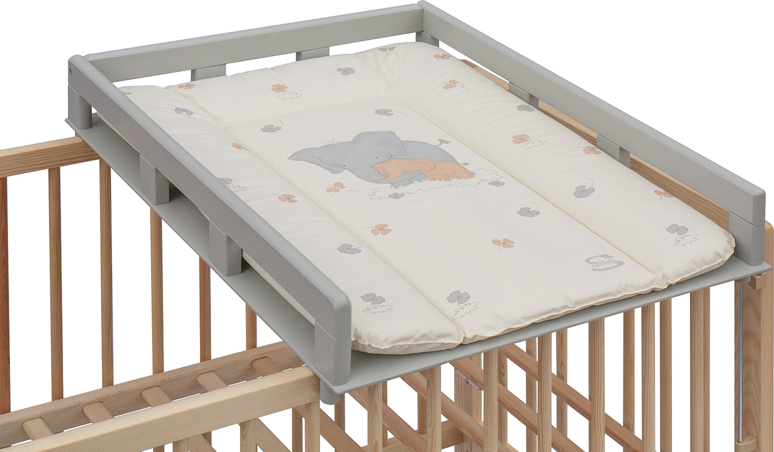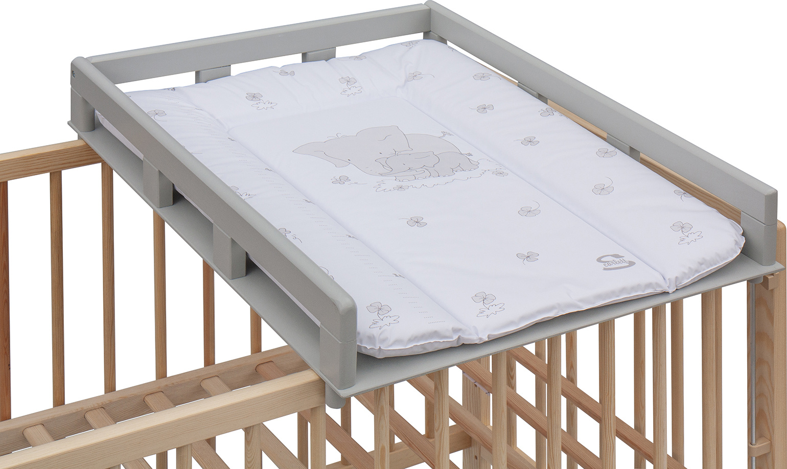 Scarlett Přebalovací pult OGY Scarlett na postýlku - šedý - s přebalovací podložkou Slon - bílý