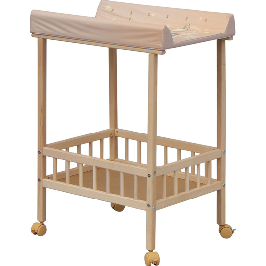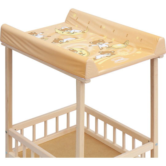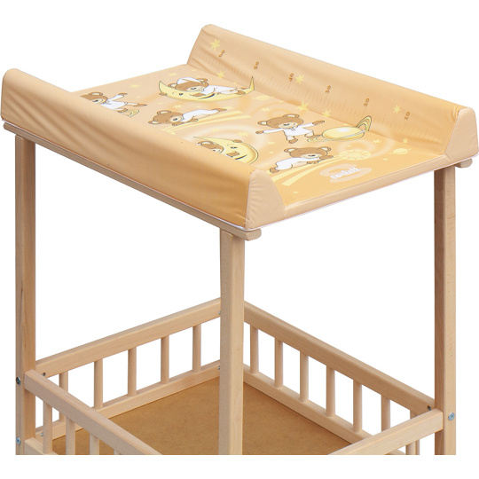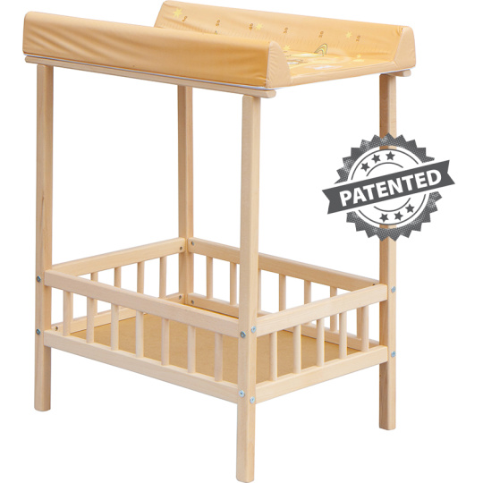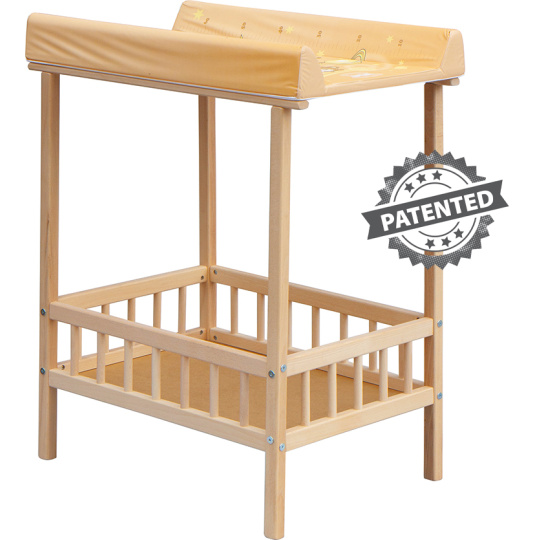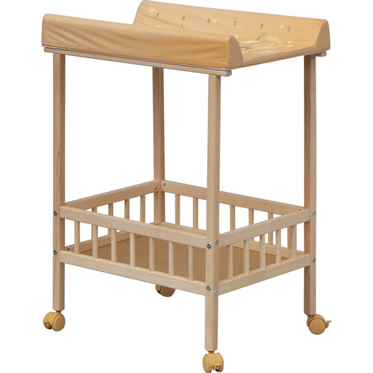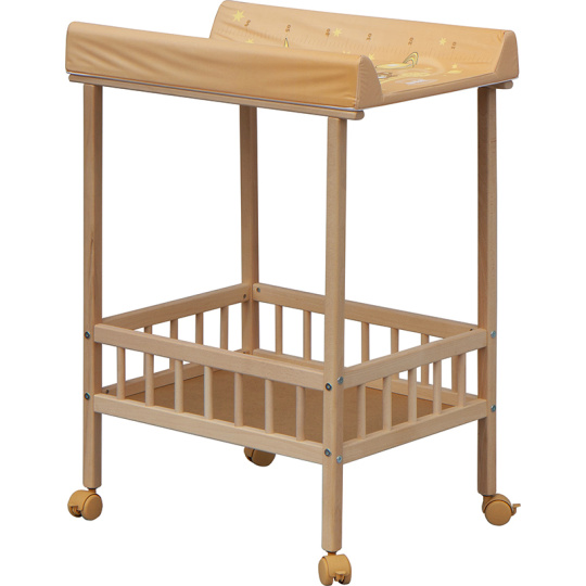 Praktický přebalovací pult se dvěmi policemi z HDF desky. Vrchní přebalovací pult z polyuretanu potažený omyvatelným PVC, vyztužený MDF deskou.