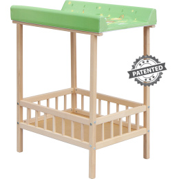 Praktický přebalovací pult se dvěmi policemi z HDF desky. Vrchní přebalovací pult z polyuretanu potažený omyvatelným PVC, vyztužený MDF deskou.