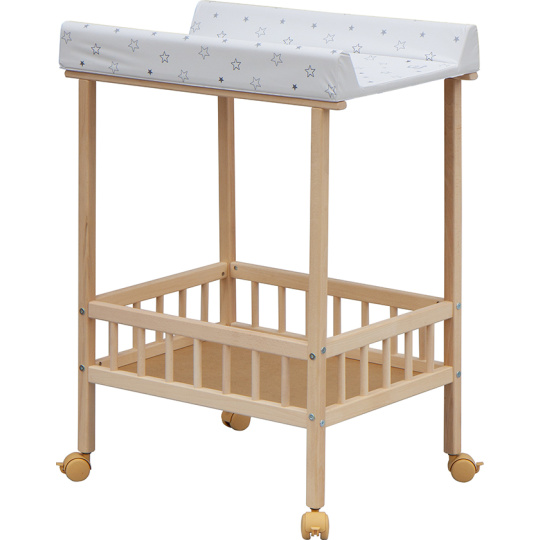 Praktický přebalovací pult se dvěmi policemi z HDF desky. Vrchní přebalovací pult z polyuretanu potažený omyvatelným PVC, vyztužený MDF deskou.