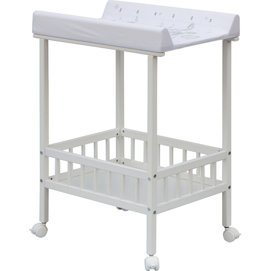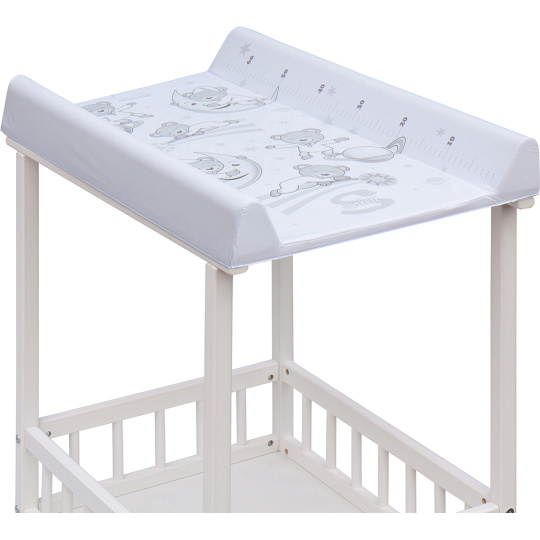 Praktický přebalovací pult se dvěmi policemi z HDF desky. Vrchní přebalovací pult z polyuretanu potažený omyvatelným PVC, vyztužený MDF deskou.