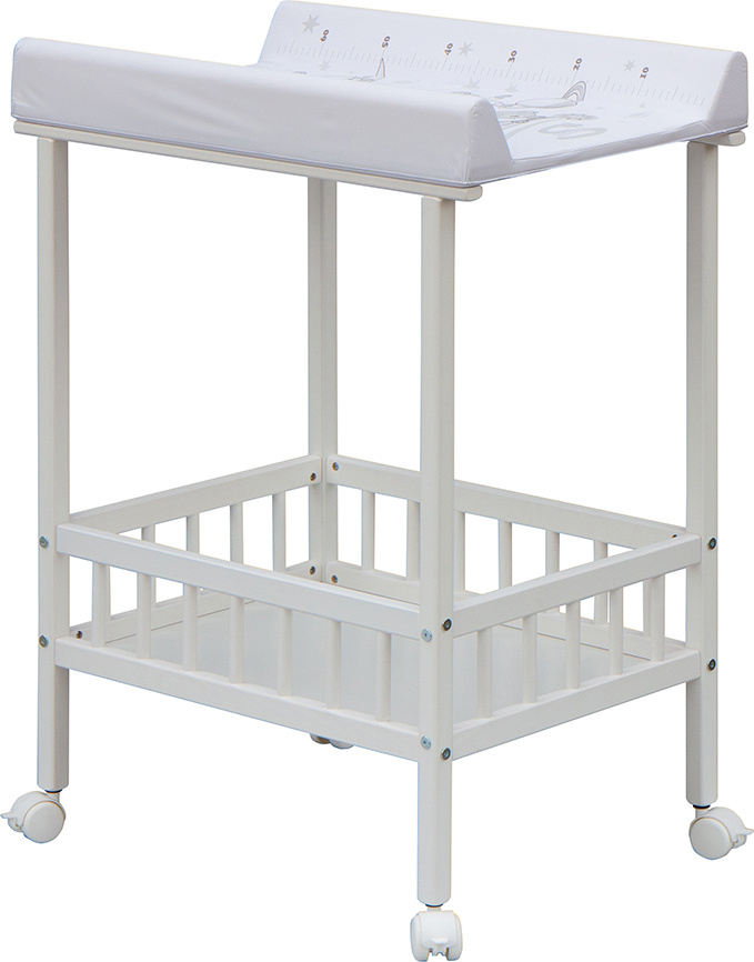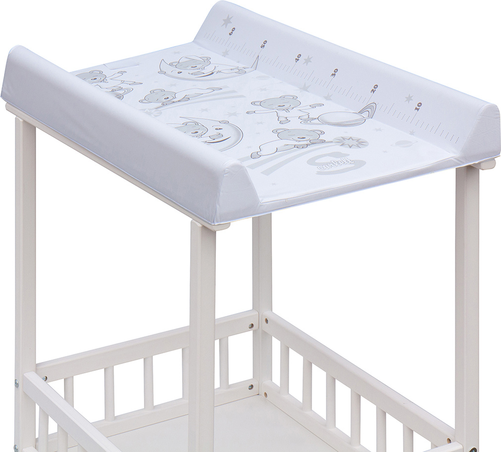 Praktický přebalovací pult se dvěmi policemi z HDF desky. Vrchní přebalovací pult z polyuretanu potažený omyvatelným PVC, vyztužený MDF deskou.