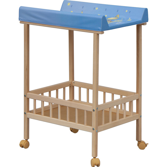 Praktický přebalovací pult se dvěmi policemi z HDF desky. Vrchní přebalovací pult z polyuretanu potažený omyvatelným PVC, vyztužený MDF deskou.