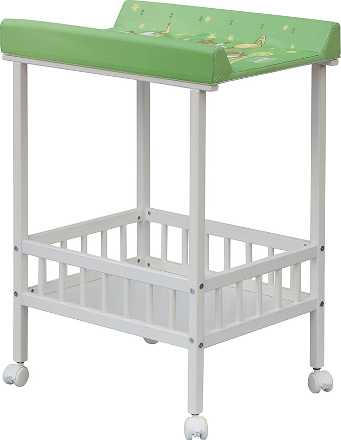 Praktický přebalovací pult se dvěmi policemi z HDF desky. Vrchní přebalovací pult z polyuretanu potažený omyvatelným PVC, vyztužený MDF deskou.