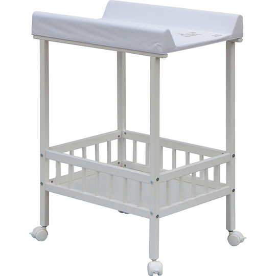 Praktický přebalovací pult se dvěmi policemi z HDF desky. Vrchní přebalovací pult z polyuretanu potažený omyvatelným PVC, vyztužený MDF deskou.