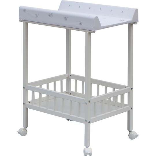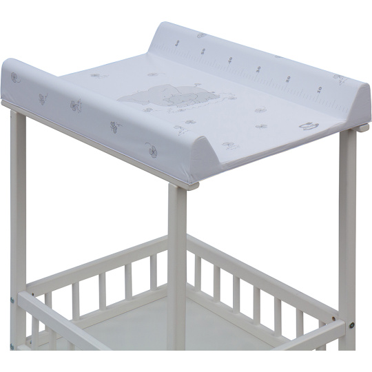 Praktický přebalovací pult se dvěmi policemi z HDF desky. Vrchní přebalovací pult z polyuretanu potažený omyvatelným PVC, vyztužený MDF deskou.
