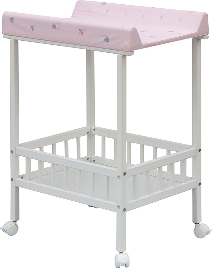 Praktický přebalovací pult se dvěmi policemi z HDF desky. Vrchní přebalovací pult z polyuretanu potažený omyvatelným PVC, vyztužený MDF deskou.