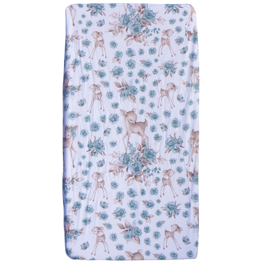 Scarlett Prostěradlo do postýlky - Scarlett Srneček - tyrkysová 120 x 60 cm