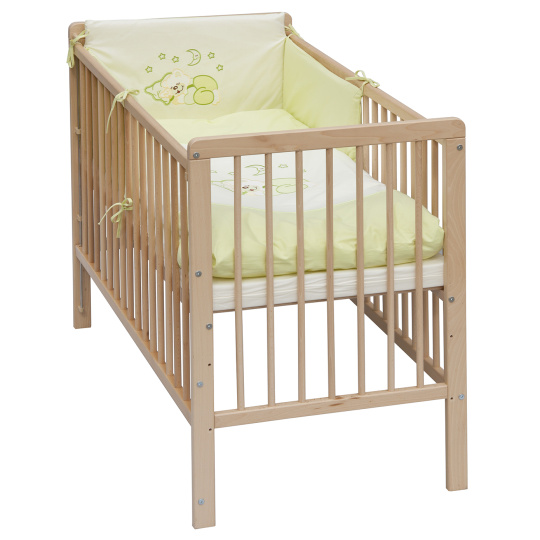 Mantinel do postýlky je okolo poloviny postýlky (do potahu mantinelu je všitý zip, potah mantinelu se pere samostatně). K uchycení slouží tkaničky v každém rohu.Povlečení je vyrobeno ze 100% bavlny. Výplň-polyester-duté vlákno.
