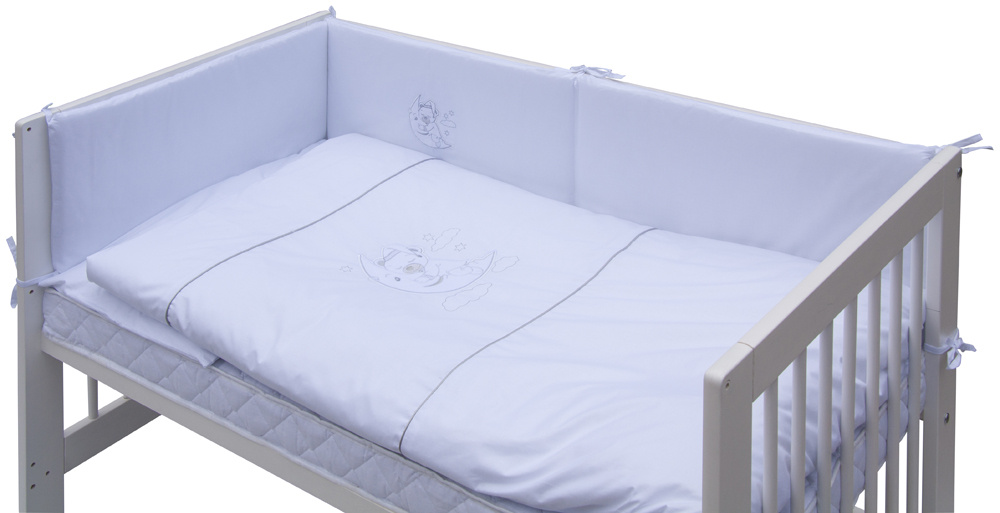 Mantinel do postýlky je prošívaný na 3 části. V každé z částí je nasunutý polštářek. Ve spodní části mantinelu do postýlky je zip. Po vyjmutí polštářků je možné mantinel jednoduše vyprat. Rozměr mantinelu do postýlky je 180 x 30 cm.