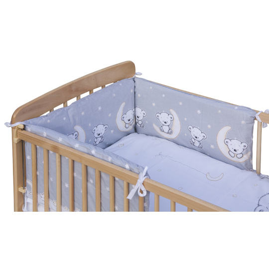 Mantinel do postýlky je prošívaný na 3 části. V každé z částí je nasunutý polštářek. Ve spodní části mantinelu je zip. Po vyjmutí polštářků je možné mantinel jednoduše vyprat. Rozměr mantinelu do postýlky je 180 x 30 cm.