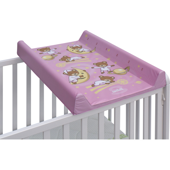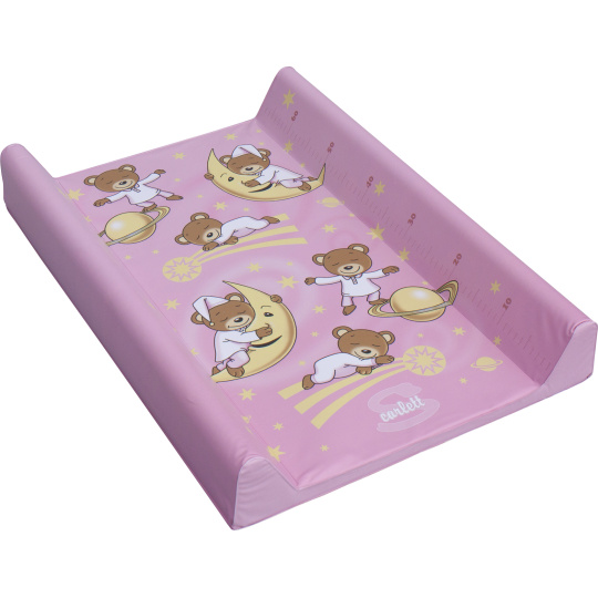 Přebalovací podložka s pevnou vložkou z MDF a profilovanými okraji s kvalitním PVC potahem bez ftalátů, vyplněná molitanem.