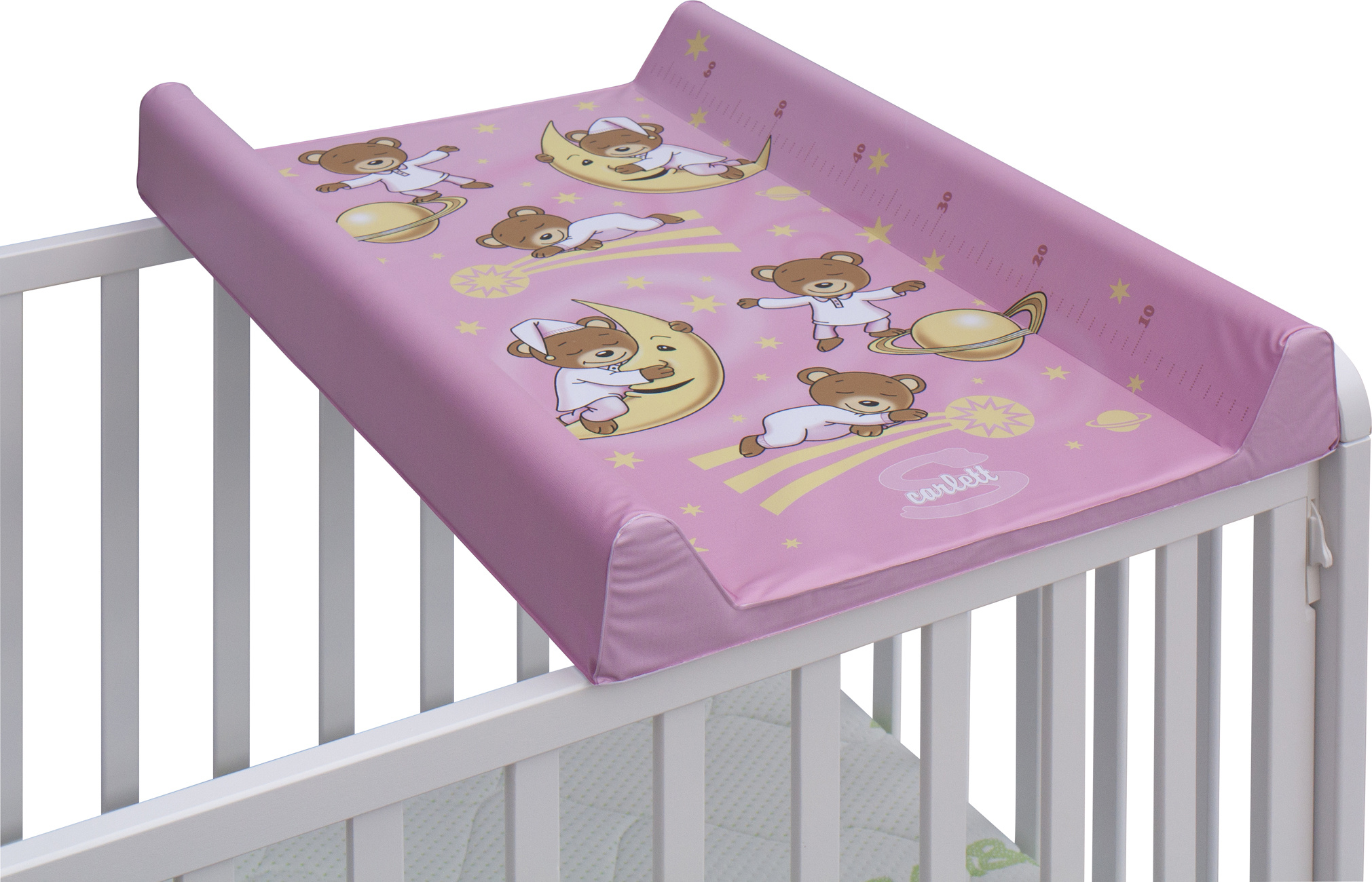 Přebalovací podložka s pevnou vložkou z MDF a profilovanými okraji s kvalitním PVC potahem bez ftalátů, vyplněná molitanem.