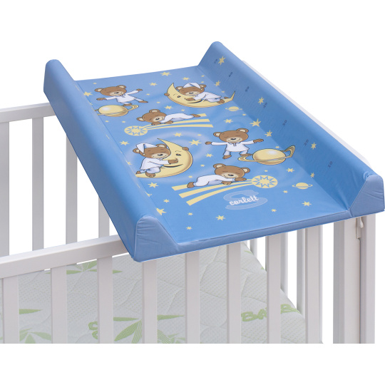 Přebalovací podložka s pevnou vložkou z MDF a profilovanými okraji s kvalitním PVC potahem bez ftalátů, vyplněná molitanem.