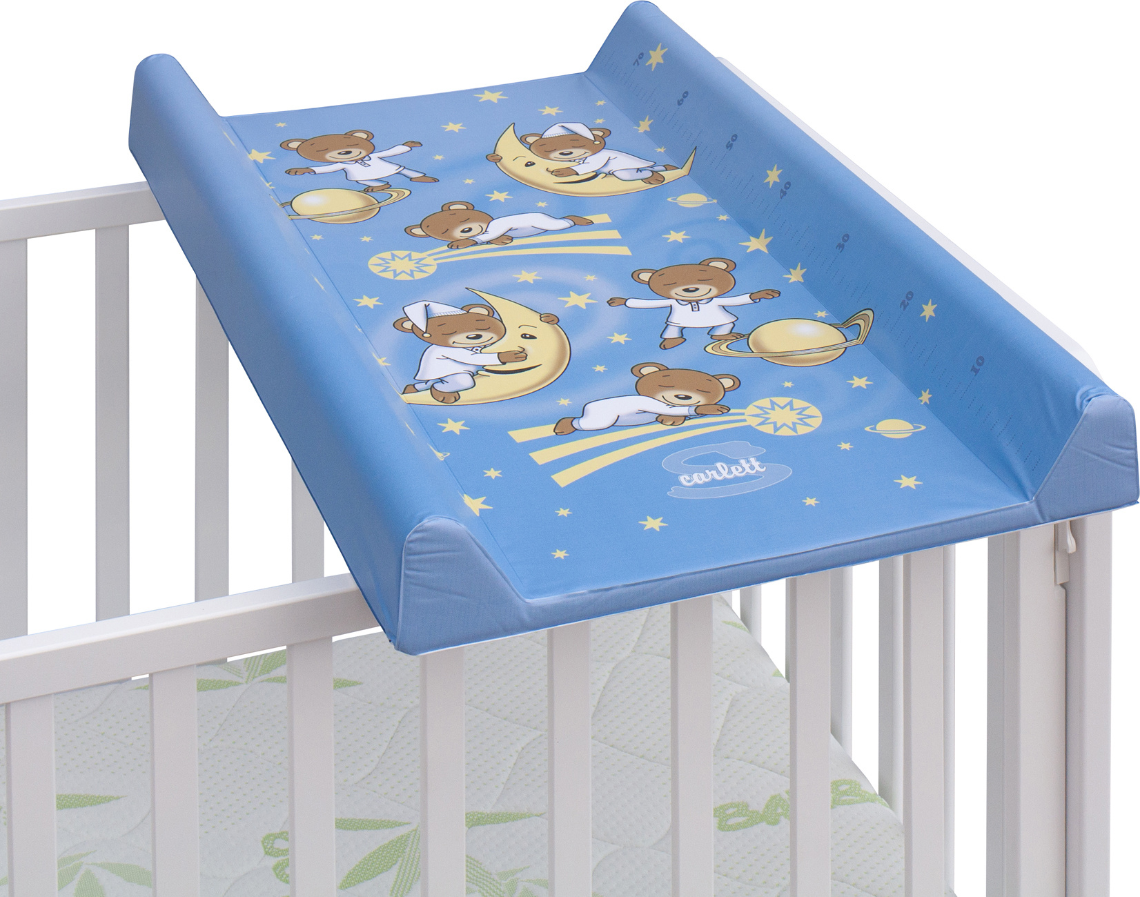 Přebalovací podložka s pevnou vložkou z MDF a profilovanými okraji s kvalitním PVC potahem bez ftalátů, vyplněná molitanem.