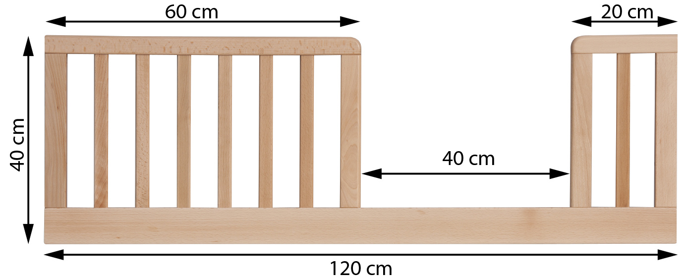 Bočnice je vyráběna z borovicového dřeva. Postýlka Scarlett vyráběná od 1. 3. 2014 je připravena k montáži bočnice. Bočnici je možné, za použití vhodného nářadní, doplnit k jakékoli postýlce o rozměru 120 x 60 cm z naší nabídky.