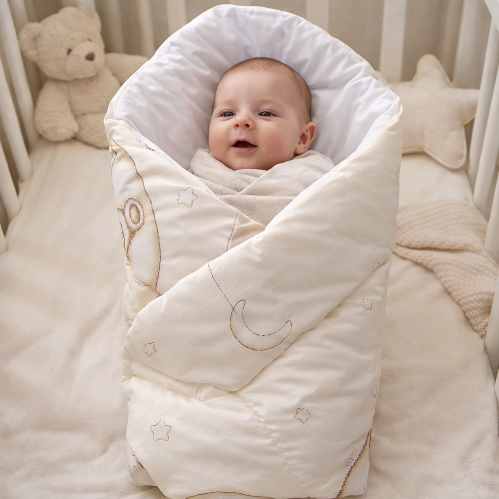 Zavinovačka je vyrobena ze 100 % bavlny a polyesterového rouna.