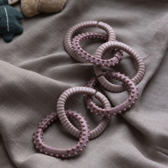 Super praktický řetěz z C kroužků ve dvou různých texturách, má mnoho využití. Kroužky můžete je zavěsit samostatně nebo společně s oblíbenou hračkou na kočárek, postýlku nebo autosedačku.