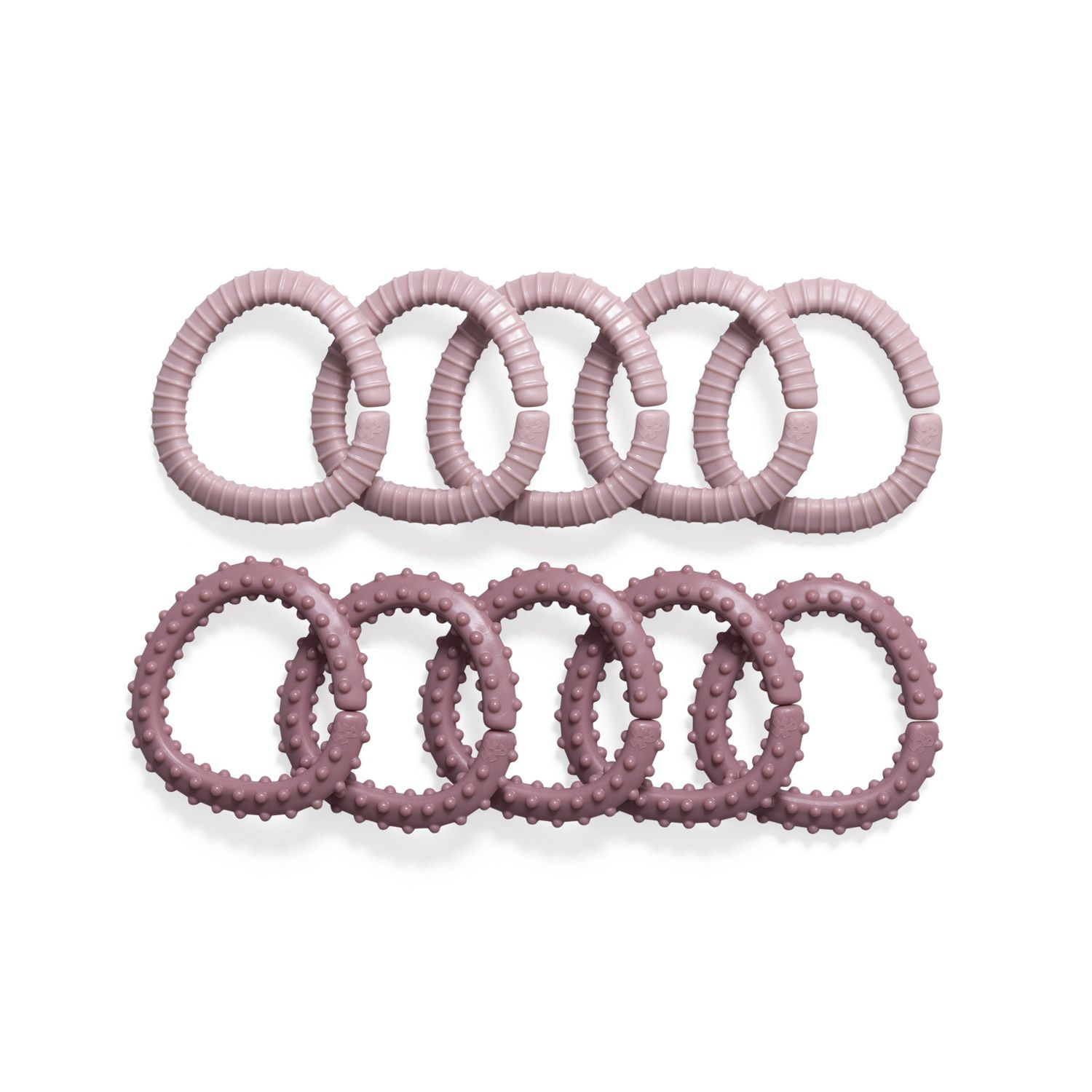 Super praktický řetěz z C kroužků ve dvou různých texturách, má mnoho využití. Kroužky můžete je zavěsit samostatně nebo společně s oblíbenou hračkou na kočárek, postýlku nebo autosedačku.