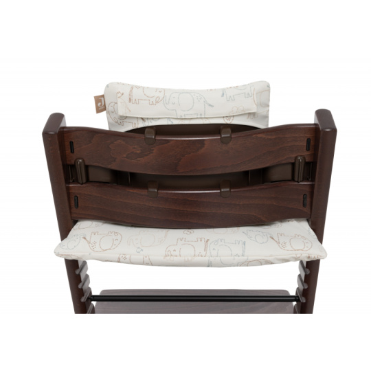 Dopřejte svému dítěti maximální pohodlí při sezení v rostoucí dřevěné židličce. Měkce polstrovaná podložka s voděodolným potahem je odolná a snadno se čistí otřením. Hravý potisk motivů slůněte dodají dětskému jídelnímu koutku veselý a přívětivý vzhled. Univerzální podložka je vhodná do většiny dřevěných rostoucích židliček. Materiál: 100% polyester s TPE povlakem Rozměry: 46 × 31 × 4 cm