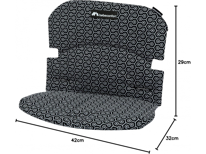 Polstrovaná sedací podložka zpříjemní vašemu dítěti sezení v židličce Bebeconfort Timba. Otvory umožňují protažení bezpečnostních pásů židličky. Podložku je možno prát v pračce na 30° C. Složení: vnější potah 100 % polyester, výplň 100 % polyuretan Rozměry: 29 x 42 x 32 cm