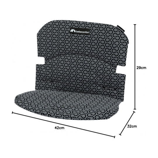 Polstrovaná sedací podložka zpříjemní vašemu dítěti sezení v židličce Bebeconfort Timba. Otvory umožňují protažení bezpečnostních pásů židličky. Podložku je možno prát v pračce na 30° C. Složení: vnější potah 100 % polyester, výplň 100 % polyuretan Rozměry: 29 x 42 x 32 cm