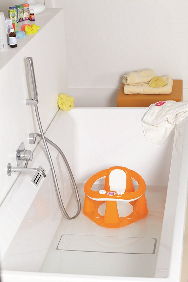 Každé koupaní je pro dítě zdrojem zábavy a poznávání nových věcí. Dítě se odráží, naklání, natahuje se za rukama maminky. To je důvod, proč OK BABY přišlo se sedadlem FLIPPER. Pohodlné sedátko se pomocí přísavek upevní do normální vany a stane se nepostradatelným pomocníkem. Ergonomický tvar a dokonalé provedení bez ostrých hran zabezpečují příjemnou koupel i u velmi „živých“ dětí. Pro děti od 6 do 15 měsíců, do 13 kg Rozměr: 39,5 × 24 × 37,5 cm