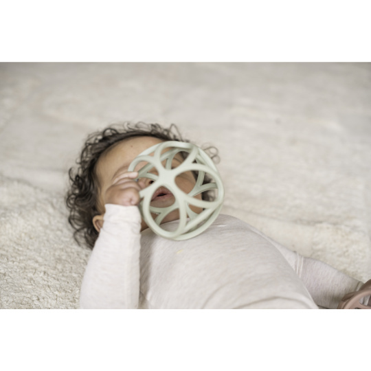 Lehounký míček z jemného silikonu má tvar pro snadné uchopení dětskými ručičkami. Míček láká dítě ke zkoumání rukama i ústy, slouží tak i jako kousátko, což oceníte při prořezávání prvních zoubků vašeho dítěte. Rozměry: 10 x 10 x 10 cm Složení: 100% silikon Vhodné pro děti od 4 měsíců.