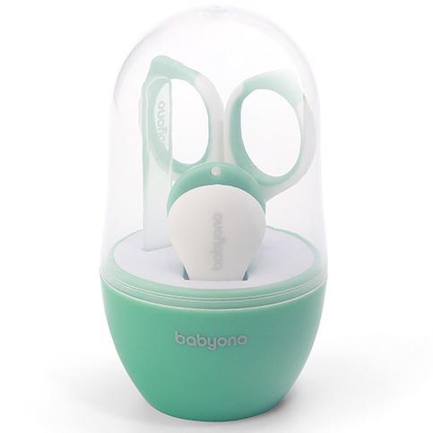 Kompletní set pro péči o dětské nehty. Všechny prvky soupravy jsou baleny v praktickém pouzdře, který umožňuje hygienické skladování a jednoduše ho sbalíte kamkoliv na cesty.  Set obsahuje nůžky z nerezové oceli, kleště na nehty a skleněný pilník na vyhlazení nerovností.  Vlastnosti:  - nůžky a kleště vám pomohou bezpečně ostříhat nehty děťátka - zaoblené konce nůžek zabraňují poranění - jemný skleněný pilník na nehty pomůže odstranit nerovnosti nehtů a ochrání dítě před poškrábáním - vhodné od 0m+  Rozměry produktu: 7 cm x 15 cm x 7 cm  Výrobek by měl být zkontrolován před každým použitím. Při prvních známkách poškození nebo opotřebení jej zlikvidujte. Výrobek není hračka. Uchovávejte výrobek mimo dosah dětí. Doporučujeme uchovat obal pro informaci. Obal uchovávejte na místě nepřístupném dětem. Před prvním použitím opláchněte výrobek horkou vodou (nevařte!) a osušte.  Adresa dodavatele: Babyono sp. z o.o., Kowalewicka 13, 60-002 Poznań, Poland. +48 61 83 90 520, info@babyono.pl, www.babyono.com